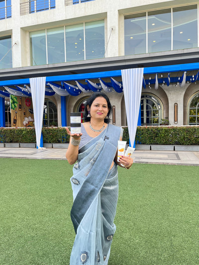 Take a small amount of moisturiser on your fingertips. Dot it evenly across your face and neck. Let it absorb completely into the skin